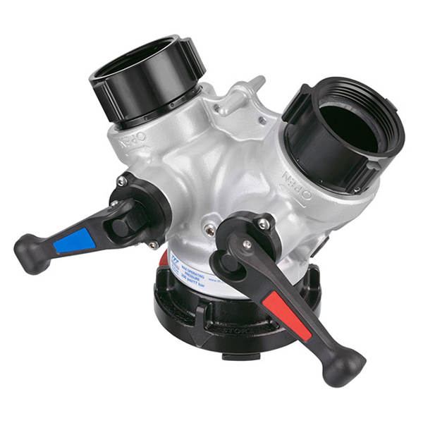 Pression de fonctionnement de 300 psi (20 bar) de chaque côté de la vanne. Sièges de soupape remplaçables. Poignées de valve pliantes au quart de tour pour une compacité ultime. Faible force nécessaire pour déplacer la vanne, même sous pression. Poignée de transport moulée. Le verrouillage automatique de la vanne maintient la position de la vanne tout en permettant des ouvertures partielles. Orifices filetés pour manomètre et purgeur. Trous pour la fixation du capuchon d'attache. Le moulage d'aluminium est anodisé dur et recouvert d'un revêtement en poudre TFT argenté à l'intérieur et à l'extérieur pour une protection maximale contre la corrosion.