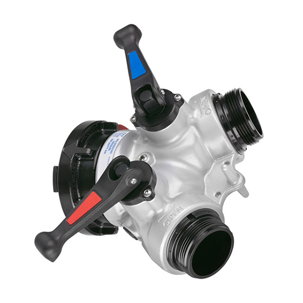 Pression de fonctionnement de 300 psi (20 bar) de chaque côté de la vanne. Sièges de soupape remplaçables facilement même dans le feu de l'action. Poignées de valve pliantes au quart de tour pour une compacité ultime. Il suffit d'une force minimale pour déplacer la vanne, même sous pression. Inclus une poignée de transport moulée. Le verrouillage automatique de la vanne maintient la position de la vanne tout en laissant la possibilité aux ouvertures partielles. Orifices filetés pour manomètre et purgeur. Trous pour la fixation du capuchon d'attache. Le moulage d'aluminium est anodisé dur et recouvert d'un revêtement en poudre TFT argenté à l'intérieur et à l'extérieur pour une protection maximale contre la corrosion.