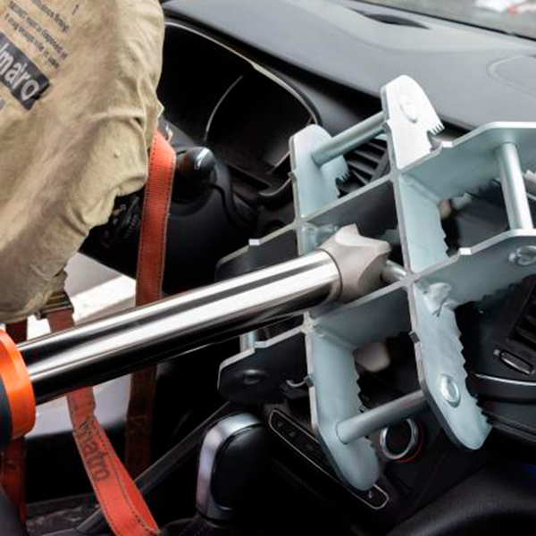 Ce nouvel ensemble est conçu pour vous aider à repousser le tableau de bord, le toit ou les pilliers d'un véhicule. Les supports de vérin croisés répartissent la charge sur une plus grande surface et empêchent le vérin de traverser les pièces intérieures de la voiture.