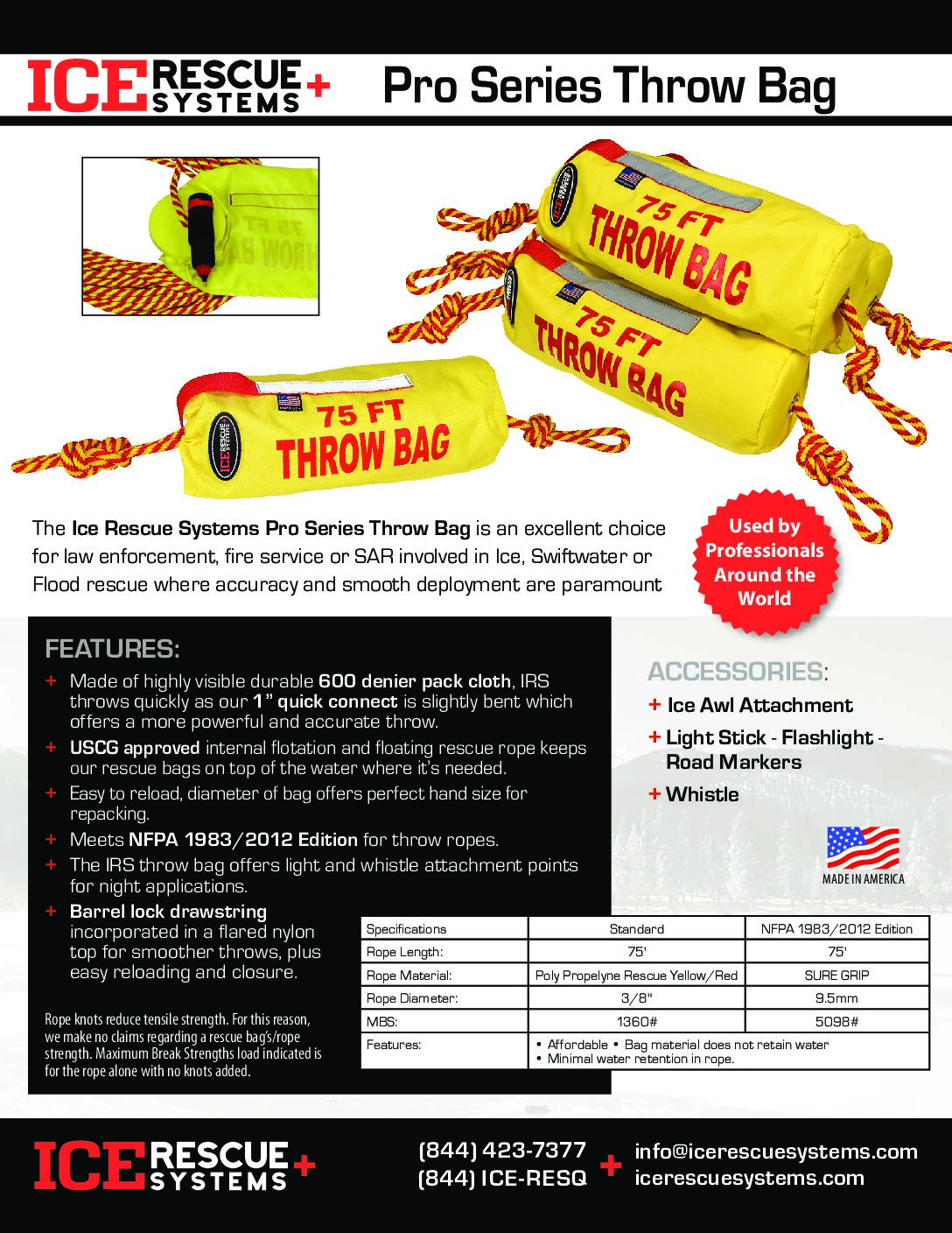 Le sac à lancer IRS est un excellent choix pour toute application de la loi ou service d'incendie qui peut être impliqué dans des travaux de sauvetage sur glace où une corde légère et solide peut être nécessaire.