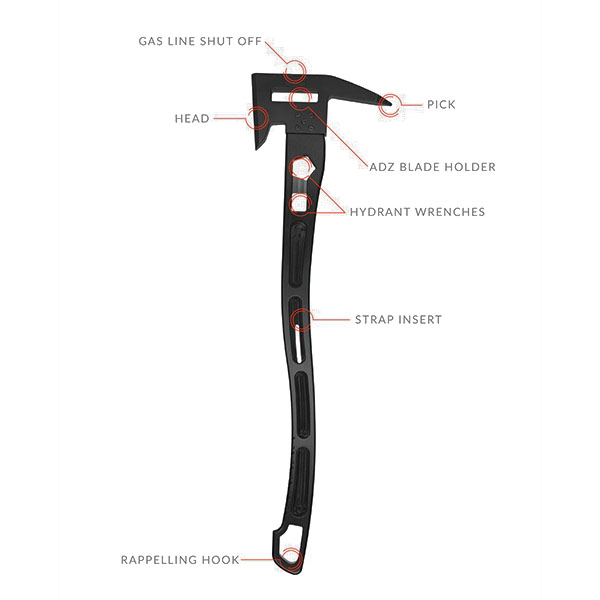 The base of the BADAXX blade has been engineered to create an emergency anchor point for first responders who find themselves trapped above the ground floor of any structure. The anchor point can latch onto, or be driven into, most building materials. A safety rope can easily be attached to the hole provided at the end of the handle to allow you to rappel to safety. The BADAXX tool allows you to complete many challenging tasks while providing you peace of mind, knowing you have a rock solid anchor point anywhere, and anytime you need it.