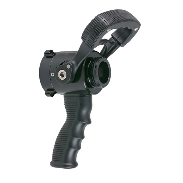 All lightweight materials, hardcoat anodized aluminum. Quick-change rear valve seat and stainless steel shut-off ball. Pistol grip is mounted below the valve. Optional color coded pistol grip and handle covers available. 1.5″ (38mm) rocker lug swivel inlet, and 1.5″ (38mm) male outlet standard.