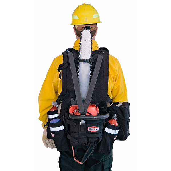 Load or unload a saw in seconds: drop the powerhead into the carrier, attach the bar with one buckle and go. The pack comes with three drawstring pockets for fuel, water, and other essentials; a Next Generation fire shelter case; and an axe scabbard. Modular design allows you to position pouches anywhere along the belt or back of the saw carrier. Other features include ultra thick dual-density foam waist belt and harness, and a leather shoulder pad to protect the harness when carrying the saw on your shoulder. Accommodates wrap around handlebars as well as top and side handlebars.