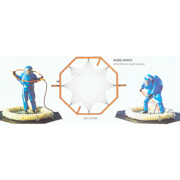 Applications include self wash-off, two person, three person, barrels, overpacks, patients on backboard, equipment, bunker gear, and overhaul.