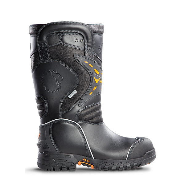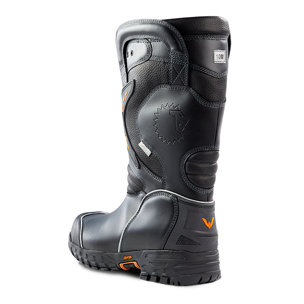 Once your foot slides in, the ankle lock system holds you firmly in place until you use the handy heel kick plate to take them off. Our exclusive Vibram® Fire & Ice All-Terrain Sole provides exceptional traction on any surface; including pitched roofs and steep embankments. It stands up to the heat and will help keep a steady foot when fighting winter fires and the water turns to ice. The PTFE Moisture Barrier also repels dangerous fluids. Take a hit to the heel thanks to the Poron® XRD® padding – the same impact protection used in motocross racing. Composite Safety Toe, Lenzi L-Protection® insole, and steel triple-rib ladder shank protect your foot from impact and the strain of working on ladders. And because you might be on your feet for hours, the dual-density removable insole molds to the shape of your foot to keep you comfortable until you’re back at the station.