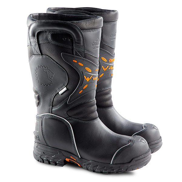 • Waterproof, flame-resisting leather upper with abrasion-resisting rubber toe and heel protection