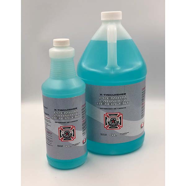 X-Tinguisher Premium Laundry Detergent is specially formulated for the cleaning needs of First Responders turn-out gear, PPE, SCBA straps, boots, gloves, helmets, firefighter hoses, upholstery, rugs, vehicle interiors, fire restoration and all washable fabrics.