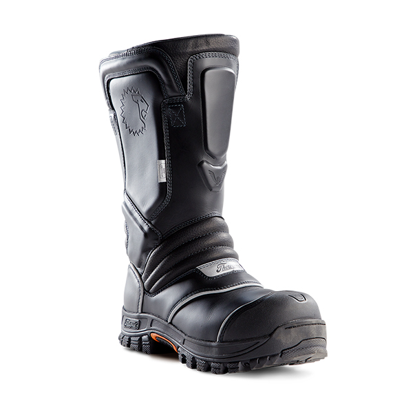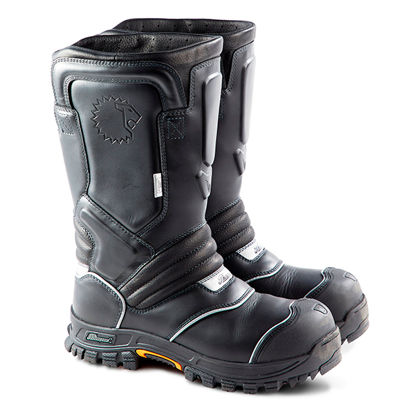 • Waterproof, flame- and cut-resisting leather upper with abrasion-resisting rubber toe