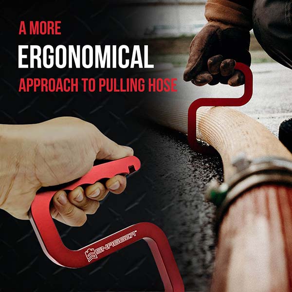 - The small opening of the tool is designed for gripping 38mm (1 ½ ”) or 45mm (1 ¾”) hose line as well as various sizes of forestry line. When charged line is “snagged” by this tool the hand is automatically turned 90 degrees from its normal position on a fire hose giving the firefighter improved posture, more strength, less fatigue and a much safer position in relation to the fire and the hose line.