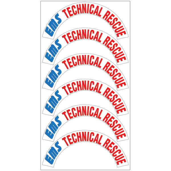 They are printed on 3M® Scotchlite Reflective Vinyl. The sheet contains 6 Crescents of the same titles and colors. The Crescent measures 6-3/4” wide x 3” high each piece.
